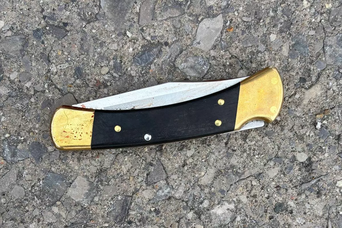 This photo provided by the Grand Traverse County Sheriff's Office on Sunday, July 27, 2025, shows the knife that authorities say was used to stab 11 people at a Walmart on Saturday, July 26, in Traverse City, Mich. (Grand Traverse County Sheriff's Office via AP)