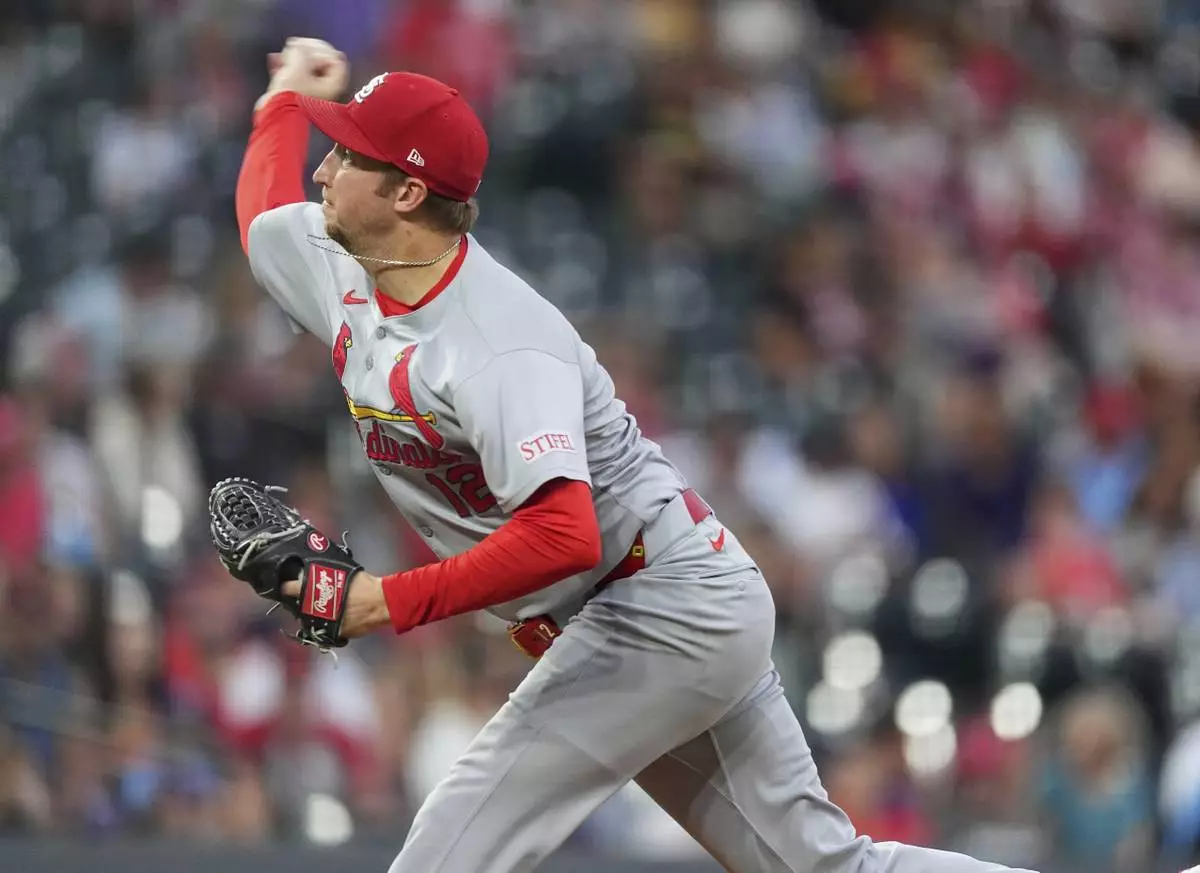 St. Louis Cardinals pitcher Erick Fedde works against the Colorado Rockies in the second inning of a baseball game Tuesday, July 22, 2025, in Denver. (AP Photo/David Zalubowski)