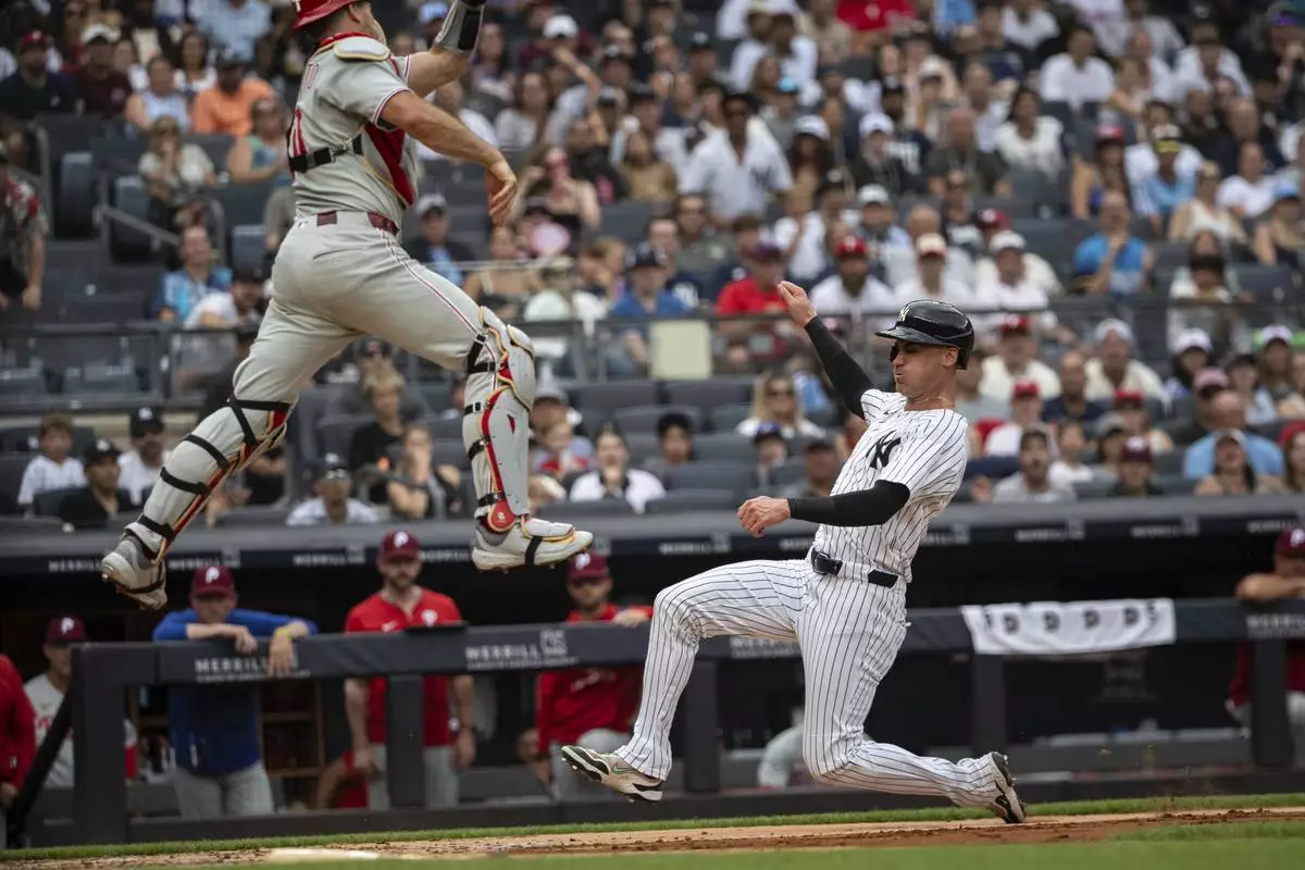 NEW YORK (AP) — Ryan McMahon sparked a comeback with a tying, two-run double in a four-run second inning against Zack Wheeler, and the New York Yankees beat the Philadelphia Phillies 4-3 Sunday to salvage the finale of a three-game series.