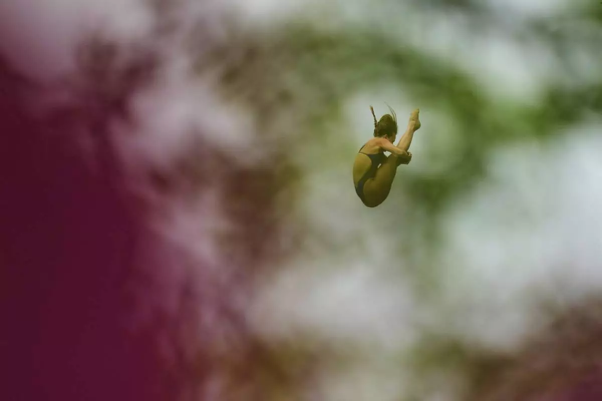 Kaylea Arnett of the United States competes in the women's 20m platform final at the World Aquatics Championships in Singapore, Saturday, July 26, 2025. (AP Photo/Vincent Thian)
