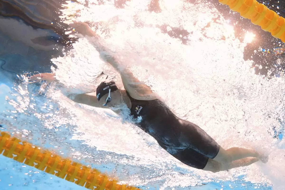 Summer McIntosh of Canada competes in the women's 200-meter individual medley final at the World Aquatics Championships in Singapore, Monday, July 28, 2025. (AP Photo/Lee Jin-man)
