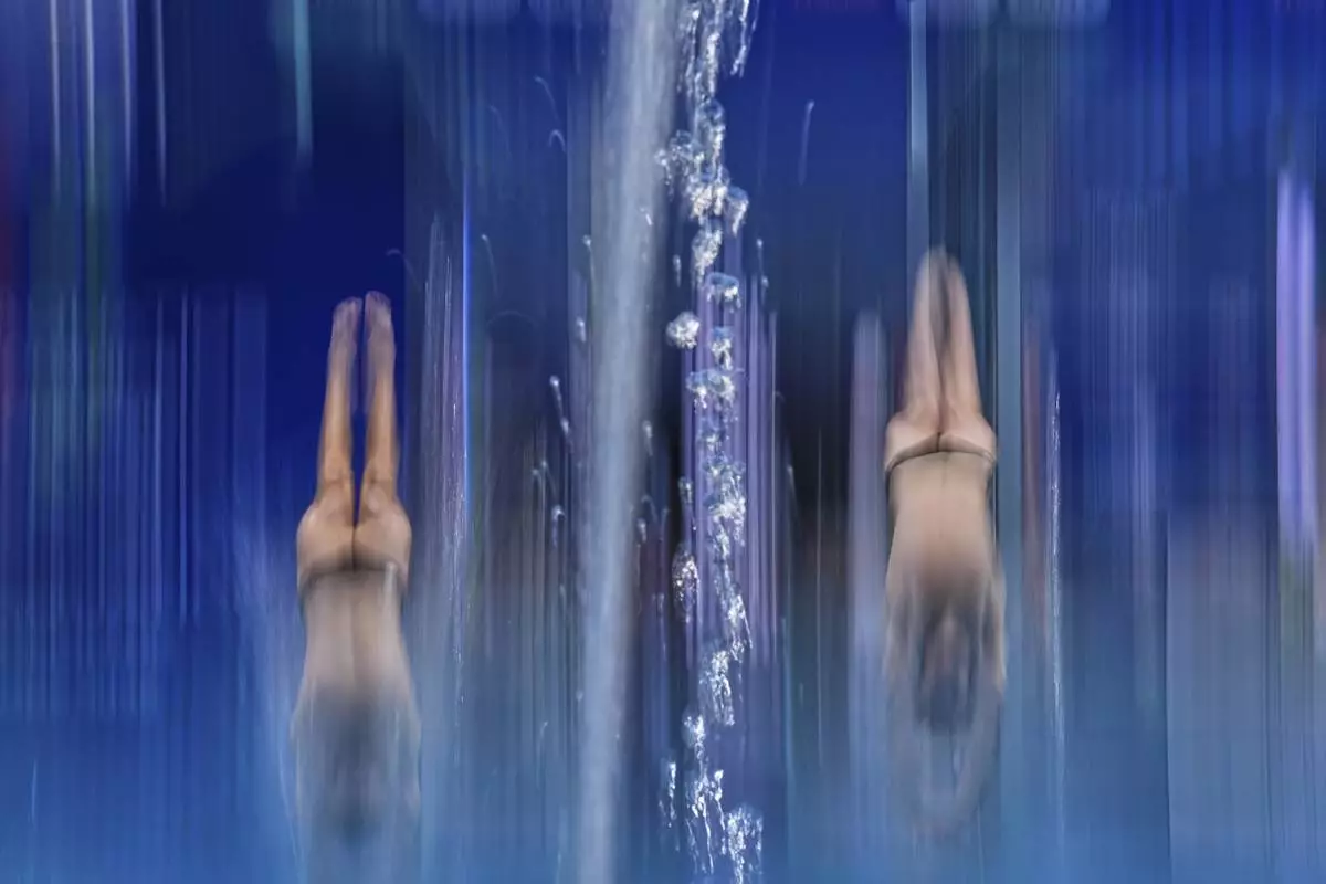 Tazman Abramowicz and Carson Paul of Canada compete in the men's 3m synchronised preliminaries at the World Aquatics Championships in Singapore, Monday, July 28, 2025. (AP Photo/Ng Han Guan)