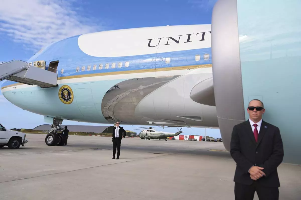 Security personnel stand by Air Force One, before President Donald Trump's arrival at Royal Air Force Lossiemouth, Tuesday, July 29, 2025, en route to return to Washington. (AP Photo/Jacquelyn Martin)