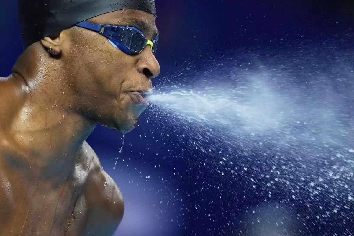 Lamar Taylor of Bahamas prepares to compete in the men's 50-meter freestyle heats at the World Aquatics Championships in Singapore, Friday, Aug.1, 2025. (AP Photo/Vincent Thian)