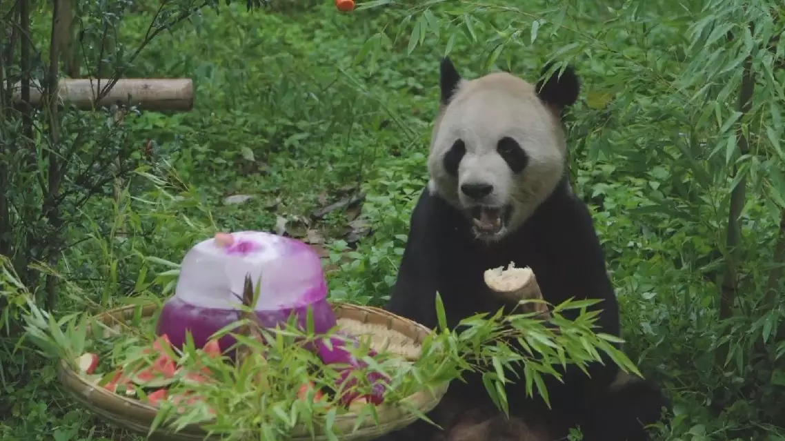 On her birthday day, panda Maozhu enjoyed a special cake prepared by the park in front of visitors.