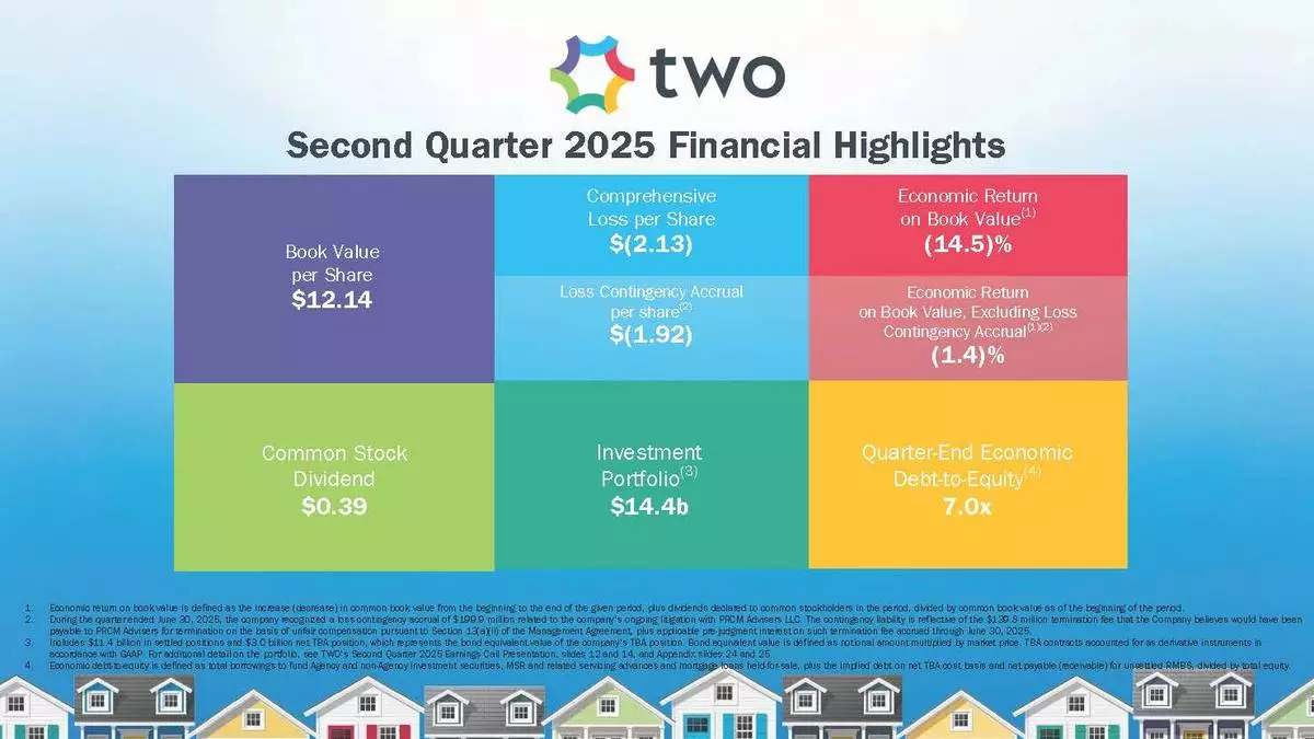 TWO (Two Harbors Investment Corp., NYSE: TWO), an MSR-focused real estate investment trust (REIT), today announced its financial results for the quarter ended June 30, 2025.