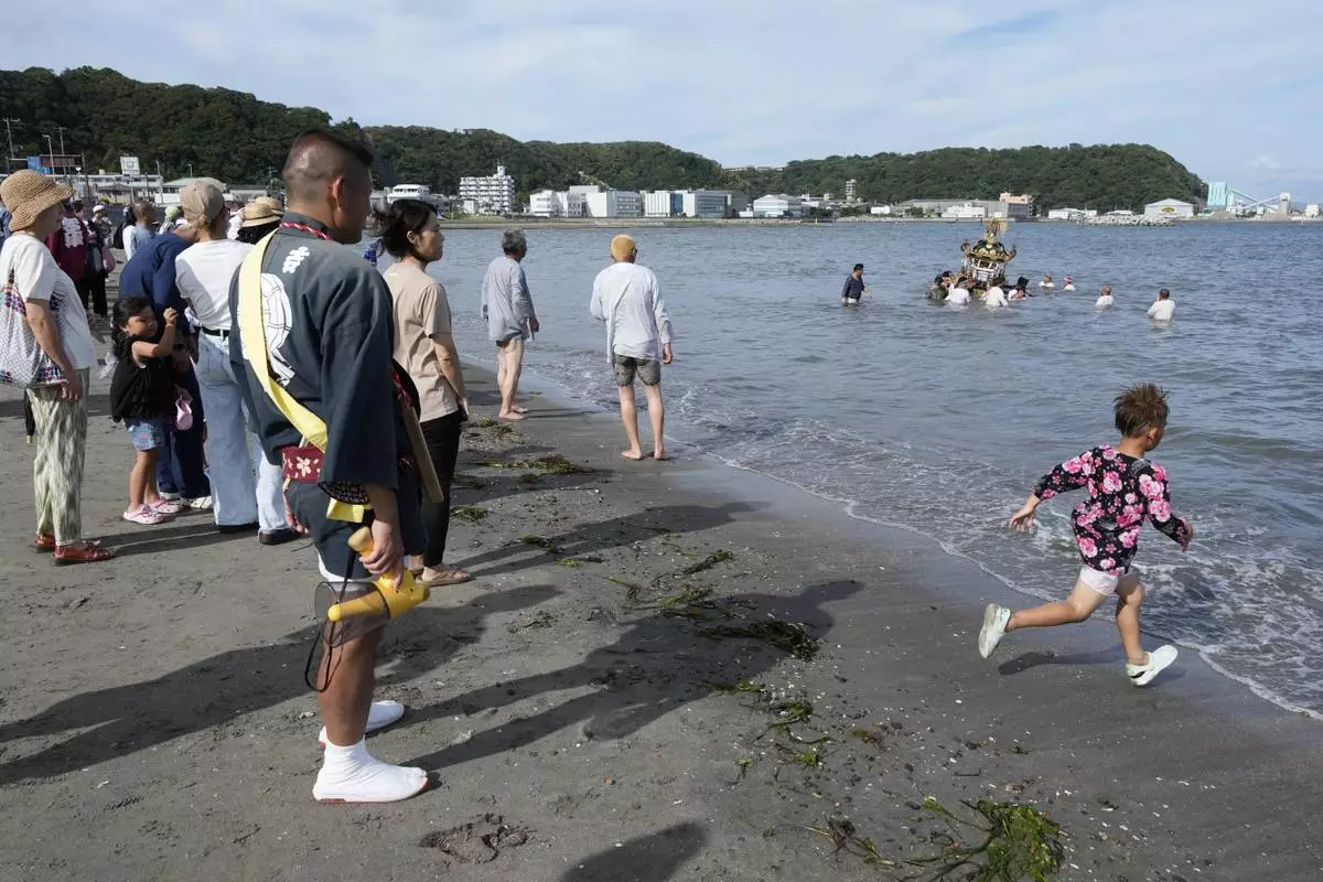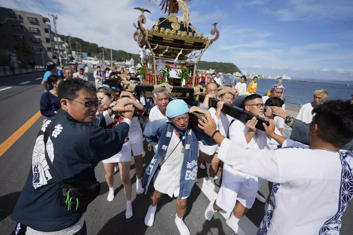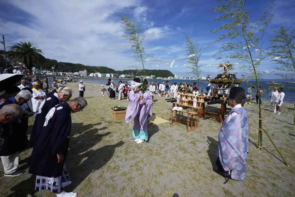 YOKOSUKA, Japan (AP) — Hundreds of residents gathered at Kurihama beach outside Tokyo over the weekend to pray for marine safety in a summer festival that fuses sacred ritual and seaside spectacle.