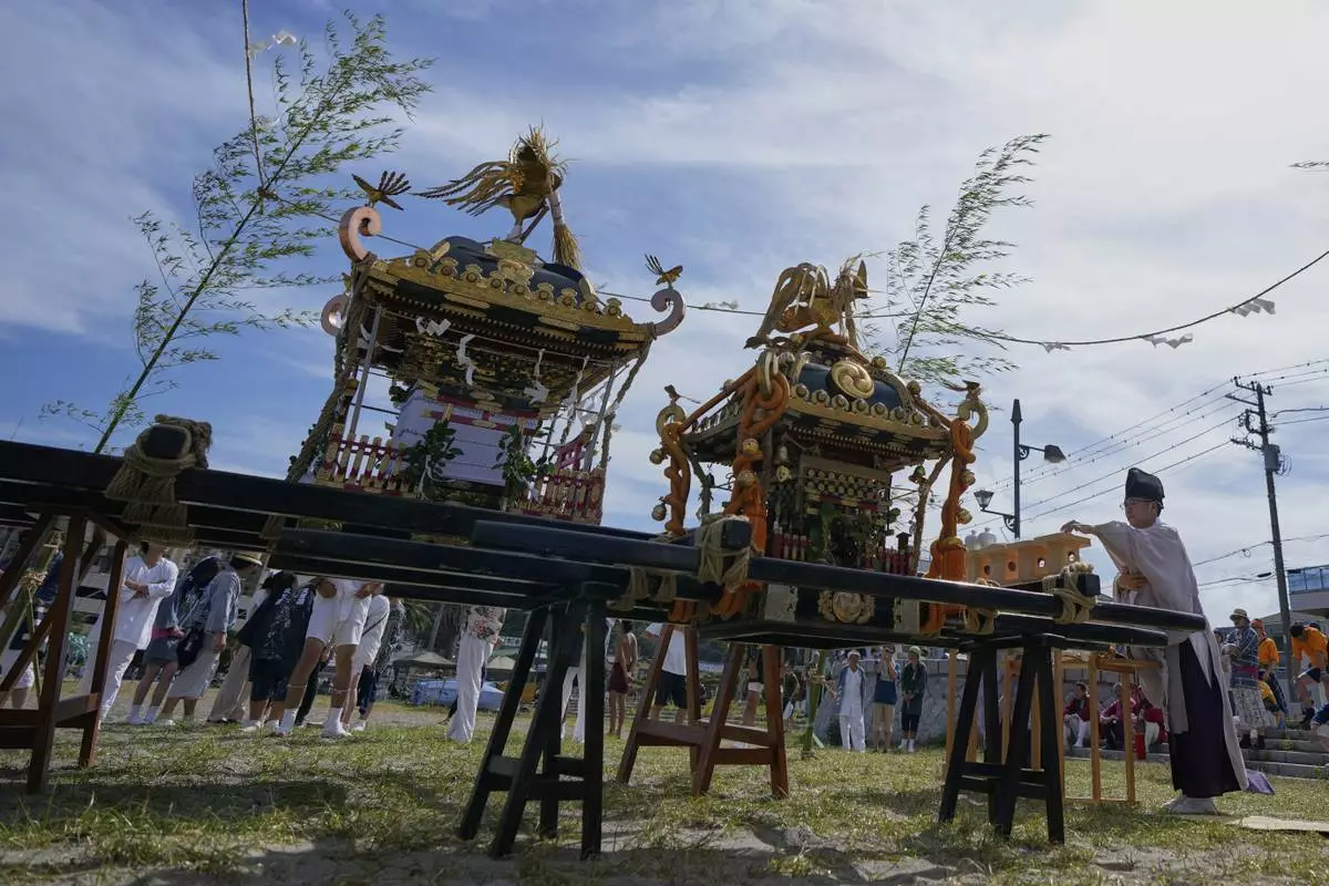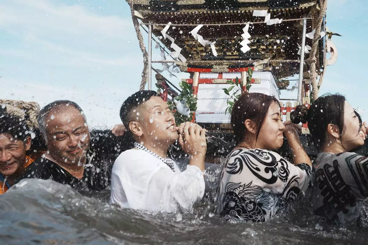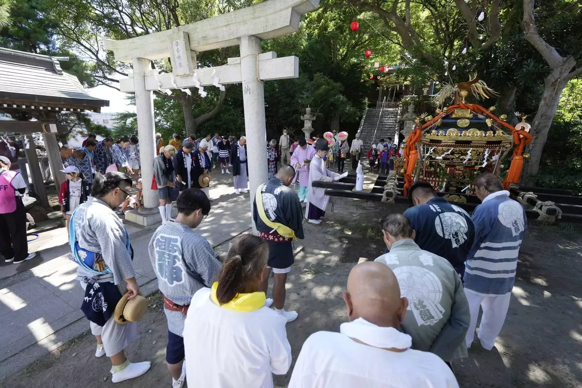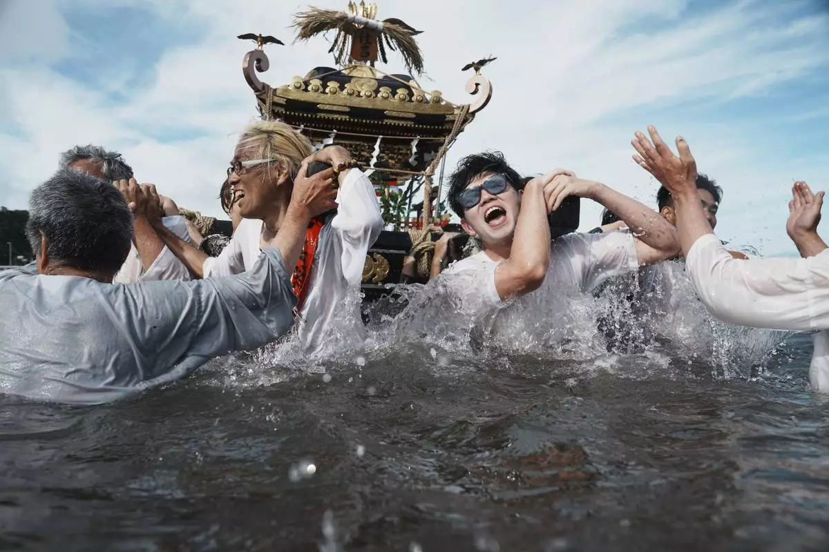 YOKOSUKA, Japan (AP) — Hundreds of residents gathered at Kurihama beach outside Tokyo over the weekend to pray for marine safety in a summer festival that fuses sacred ritual and seaside spectacle.