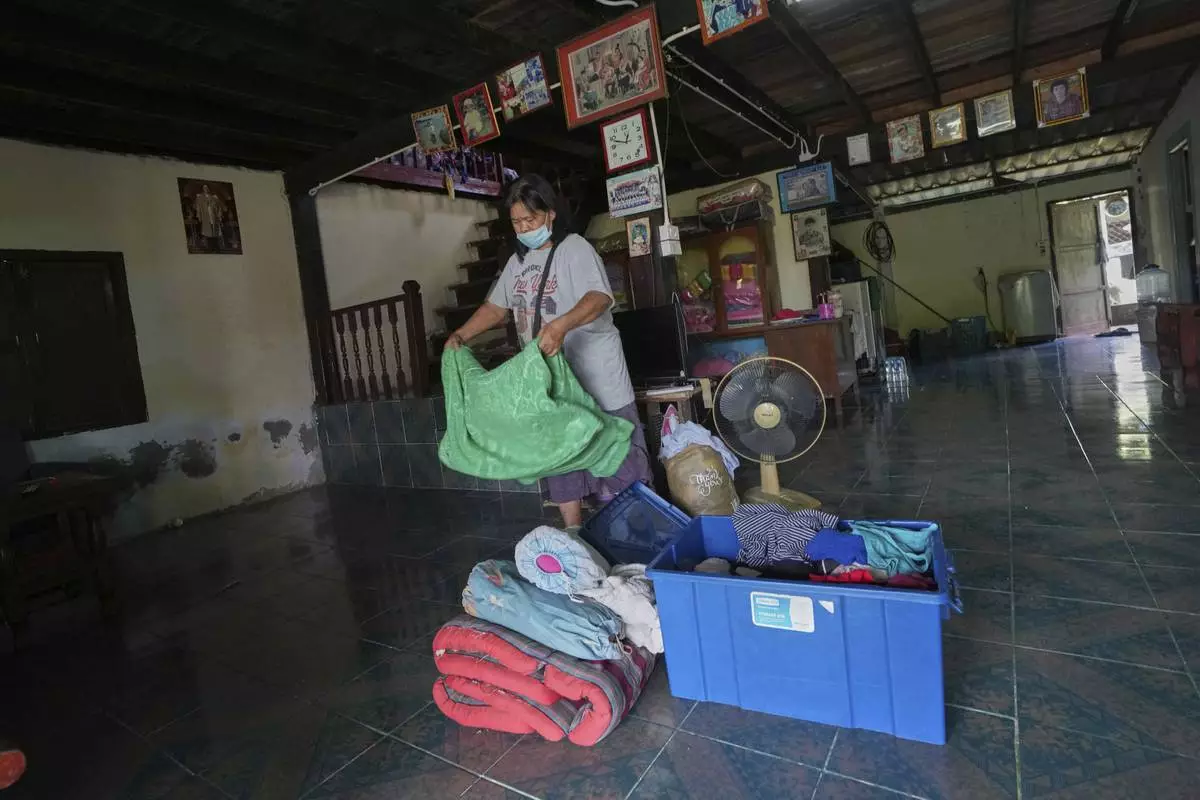 Kalwalin Jindasri who had fled home following the clashes between Thai and Cambodian soldiers, arranges her belongings after returning home in Surin province, Thailand, Tuesday, July 29, 2025 after the ceasefire was supposed to take effect at midnight on July 28, 2025. (AP Photo/Sakchai Lalit)