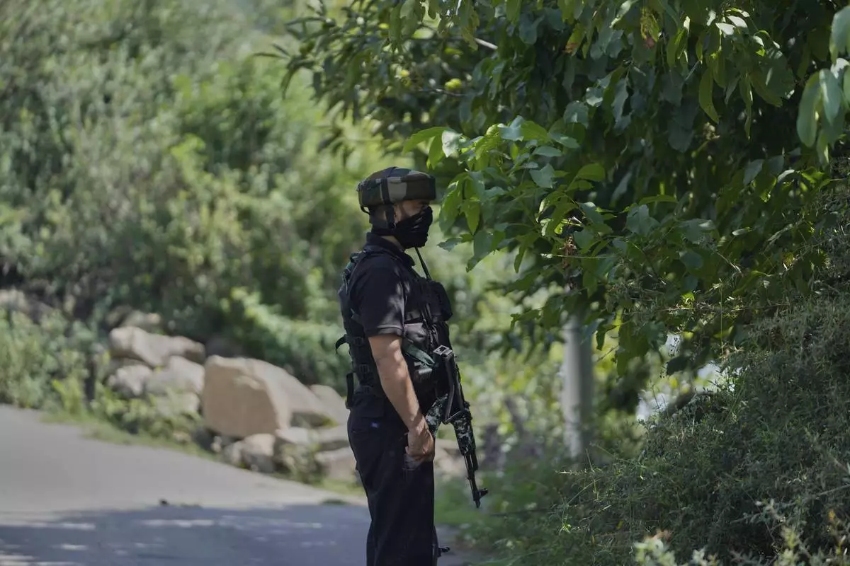 An Indian soldier guards at a check point near the site of a gun battle on the outskirts of Srinagar, Indian controlled Kashmir, Monday, July 28, 2025.(AP Photo/Mukhtar Khan)