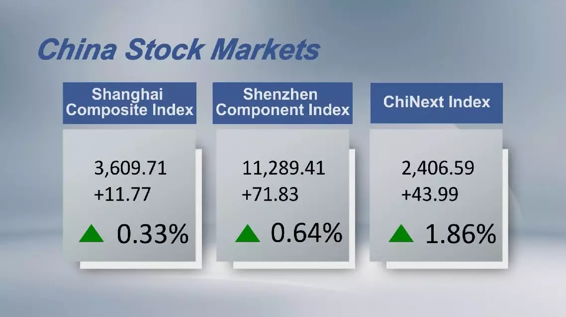 Chinese stocks closed higher on Tuesday, with the benchmark Shanghai Composite Index up 0.33 percent to 3,609.71 points.