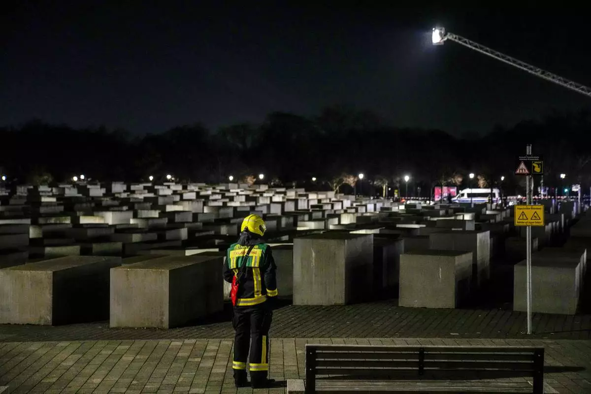 FILE - The Holocaust memorial after a man was attacked at the memorial site in Berlin, Germany, on Feb. 21, 2025. (AP Photo/Ebrahim Noroozi, File)