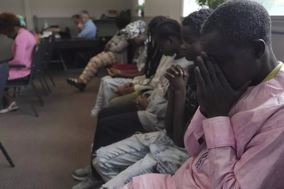 Worshippers pray during service at The Reformed Baptist Church in Saint Jerome, Quebec, Sunday, June 29, 2025. (AP Photo/Luis Andres Henao)