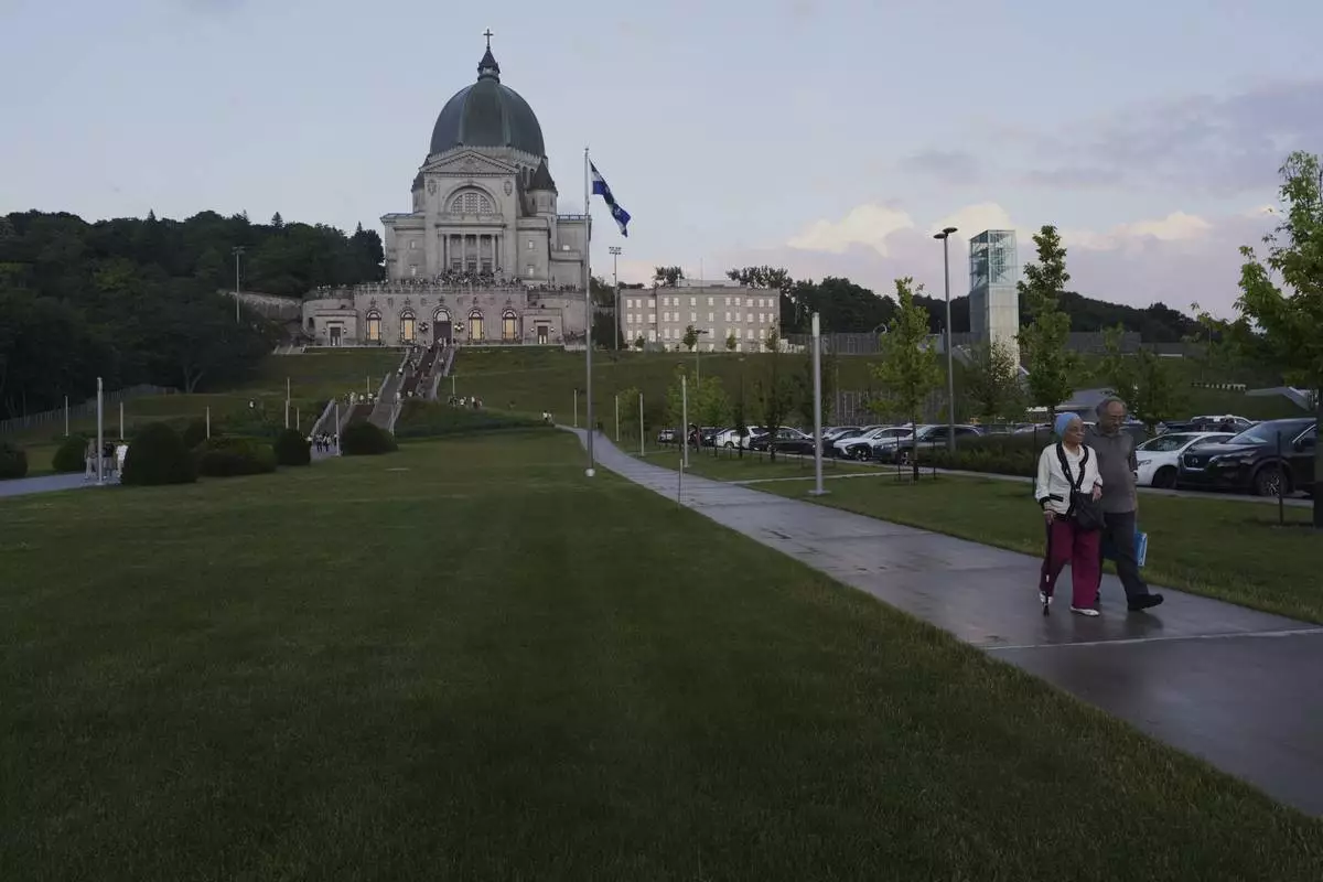 Visitors leave the national shrine of Saint Joseph's Oratory of Mount Royal in Montreal, Saturday, June 28, 2025. (AP Photo/Luis Andres Henao)