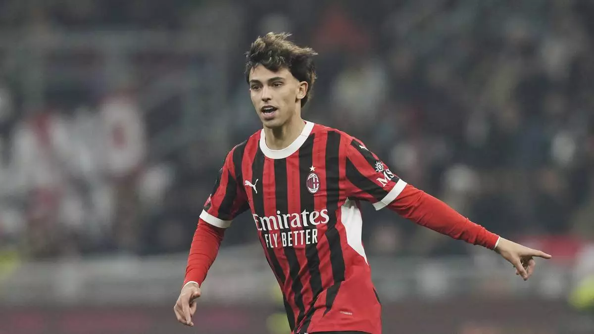 FILE - AC Milan's Joao Felix runs during the Serie A soccer match between AC Milan and Inter Milan at the San Siro stadium, in Milan, Italy, Wednesday, Feb. 5, 2025. (AP Photo/Antonio Calanni, file)