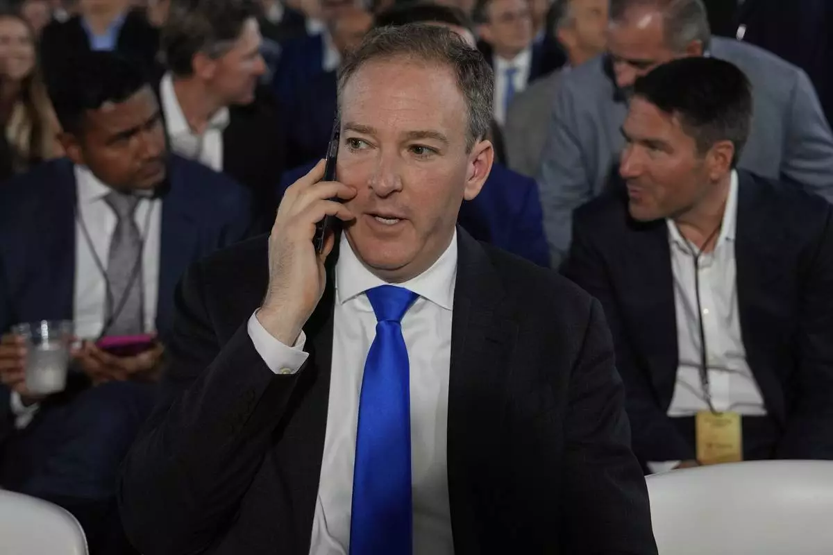 Environmental Protection Agency director Lee Zeldin arrives before President Donald Trump speaks during an AI summit at the Andrew W. Mellon Auditorium, Wednesday, July 23, 2025, in Washington. (AP Photo/Julia Demaree Nikhinson)