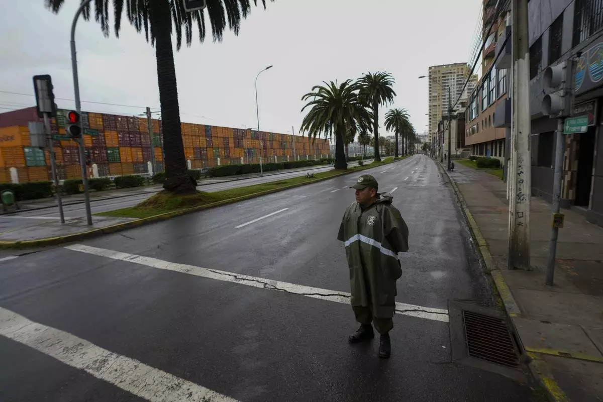 A police officer patrols a street near the sea during a precautionary tsunami advisory in Valparaiso, Chile, Wednesday, July 30, 2025, after an earthquake struck off the coast of Russia. (AP Photo/Esteban Felix)
