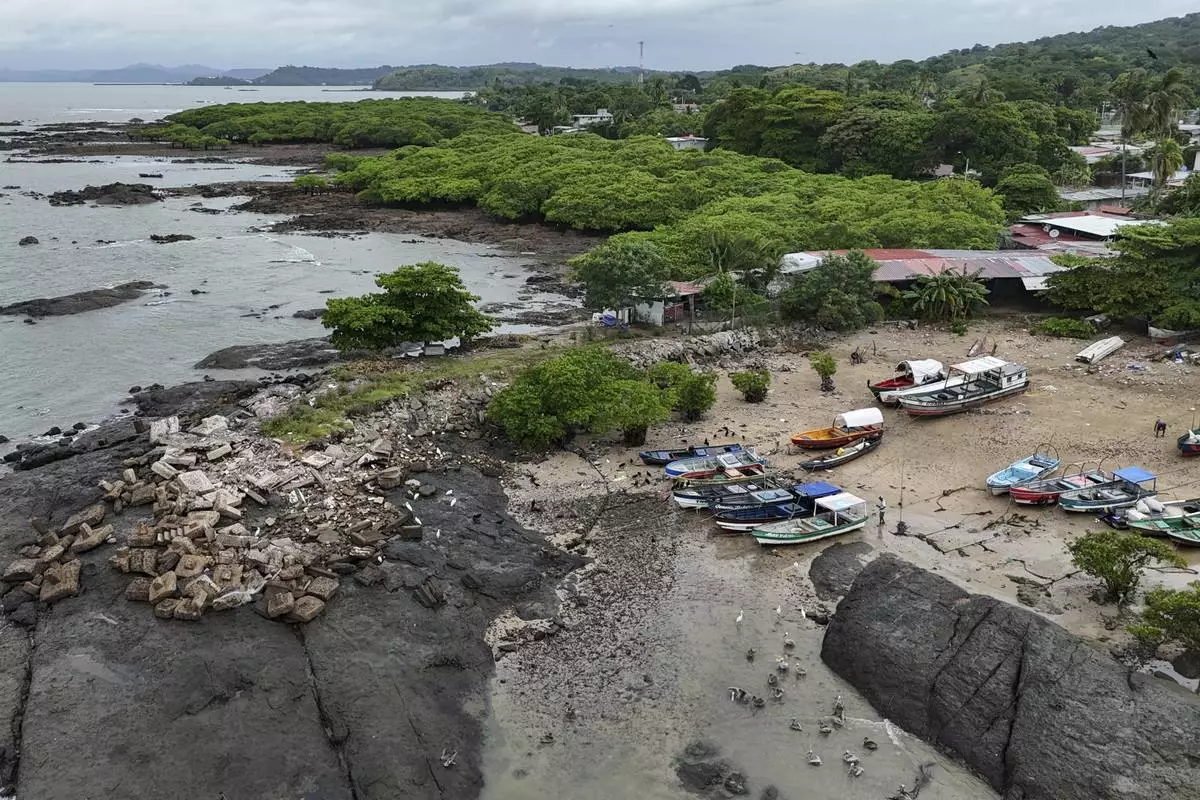 Boats sit on the shore in Veracruz, Panama, Wednesday, July 30, 2025, after fishermen removed them from the water as a precaution following a tsunami warning after an earthquake struck off the coast of Russia. (AP Photo/Matias Delacroix)