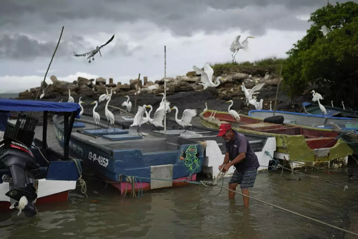A fisherman ties his boat near the shore in Veracruz, Panama, Wednesday, July 30, 2025, as a precaution due to a tsunami warning after an earthquake struck off the coast of Russia. (AP Photo/Matias Delacroix)