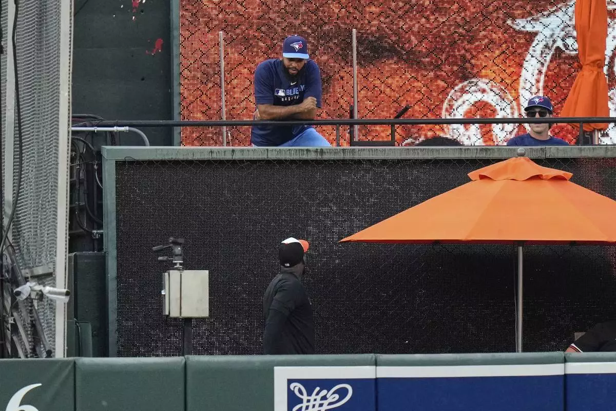 Blue Jays hitting coach David Popkins was ejected while Toronto was batting in the seventh.