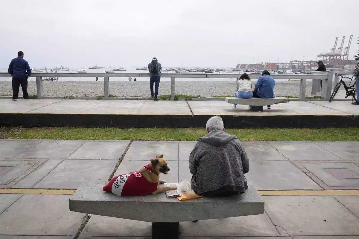 A man rest with her dog in a bench in front of Abtao beach in Callao, Peru, Wednesday, July 30, 2025, following a tsunami warning after a earthquake that struck off the coast of Russia. (AP Photo/Martin Mejia)