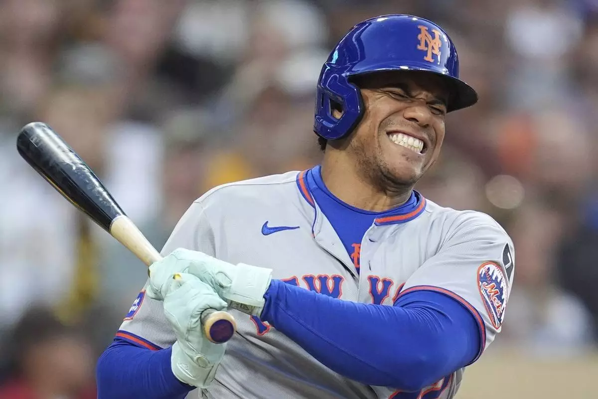 SAN DIEGO (AP) — New York Mets slugger Juan Soto was removed from Tuesday night's game at San Diego a half inning after fouling a ball off the top of his left foot in the fourth.