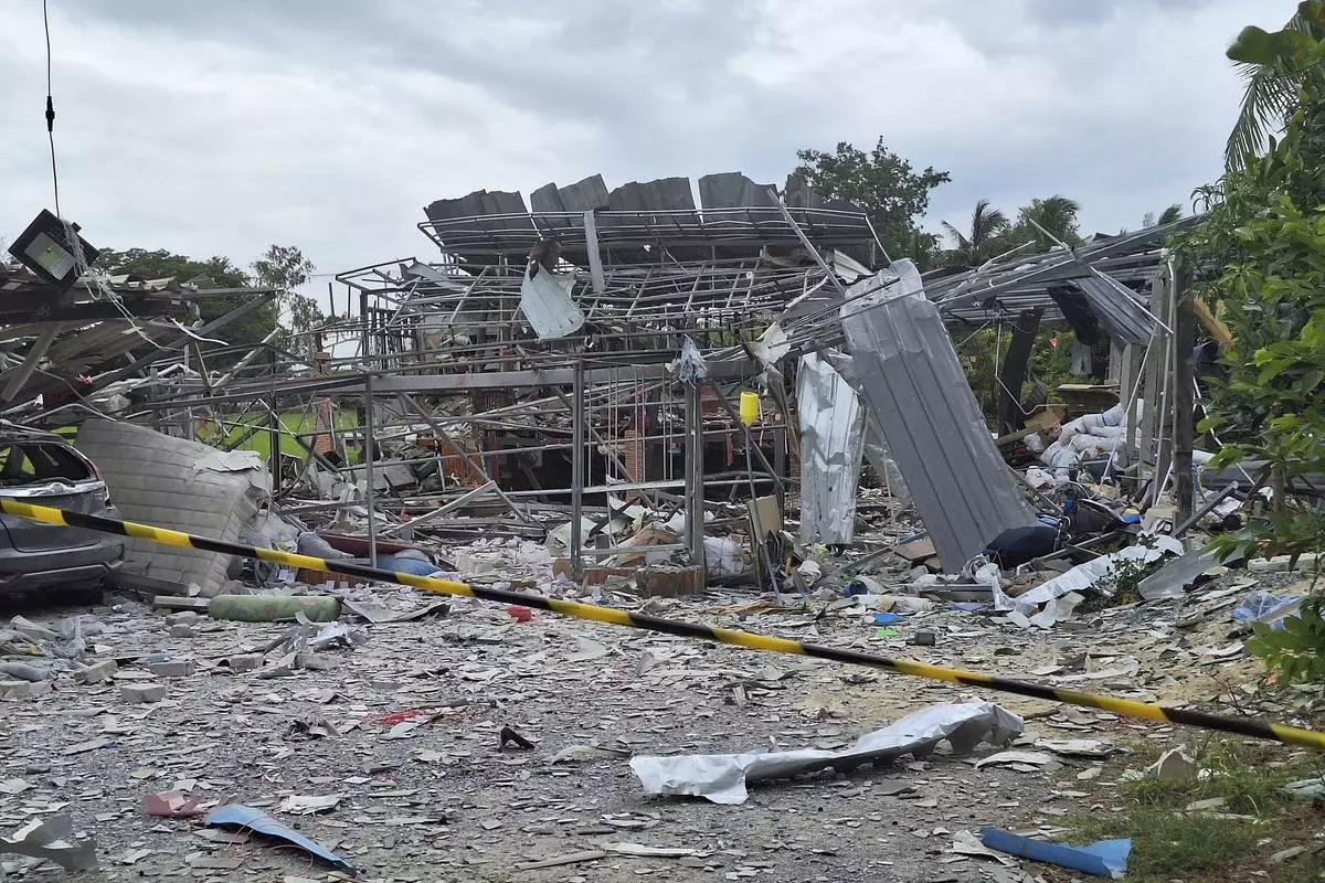 This photo released by Suphan Buri Provincial Public Relations Office, shows the damage by an explosion at a fireworks factory in Suphan Buri province, Thailand, Wednesday, July 30, 2025. (Provincial Public Relations Office Suphan Buri via AP)