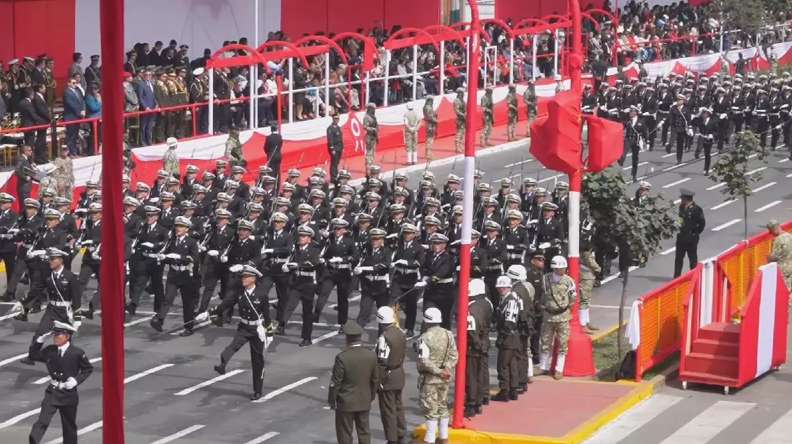 Preluded by cultural performances and the appearance of civilian delegations, the parade officially kicked off with phalanxes from the Peruvian Army, Navy, and Air Forces, with the National Police marching in succession. Firefighters, medical workers, and representatives from various government departments also joined the parade in formations.