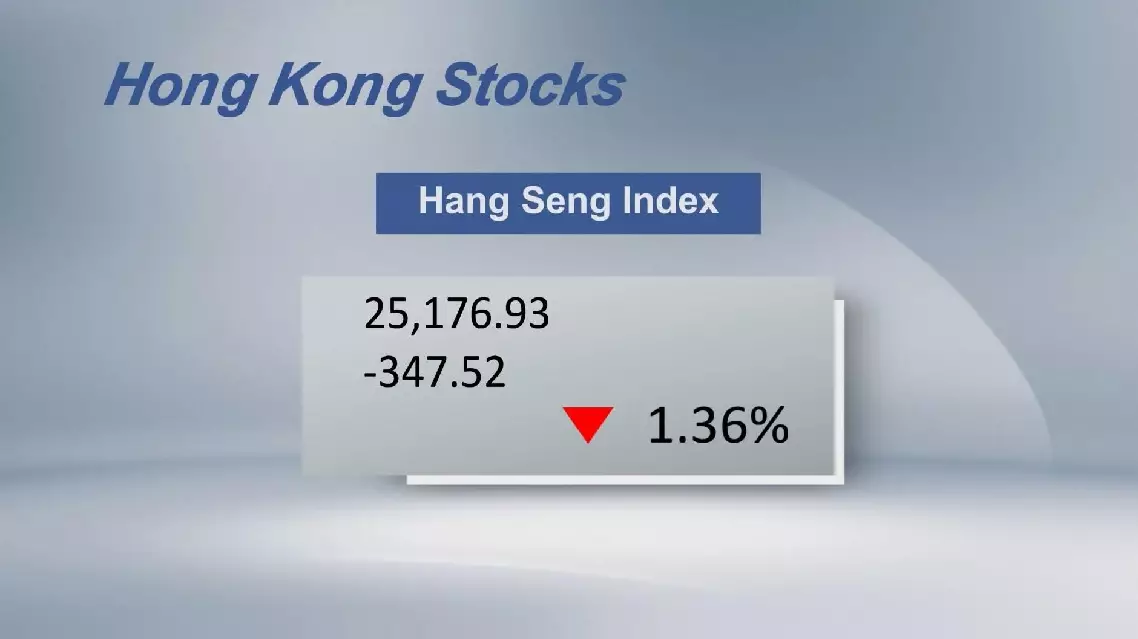 The Hong Kong stock market ended lower Wednesday with the benchmark Hang Seng Index down 1.36 percent to close at 25,176.93 points.