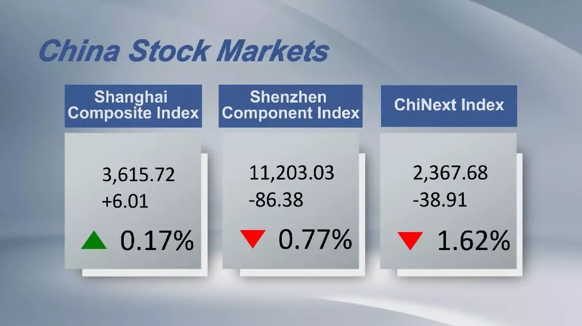 Chinese stocks closed mixed on Wednesday, with the benchmark Shanghai Composite Index up 0.17 percent to 3,615.72 points.