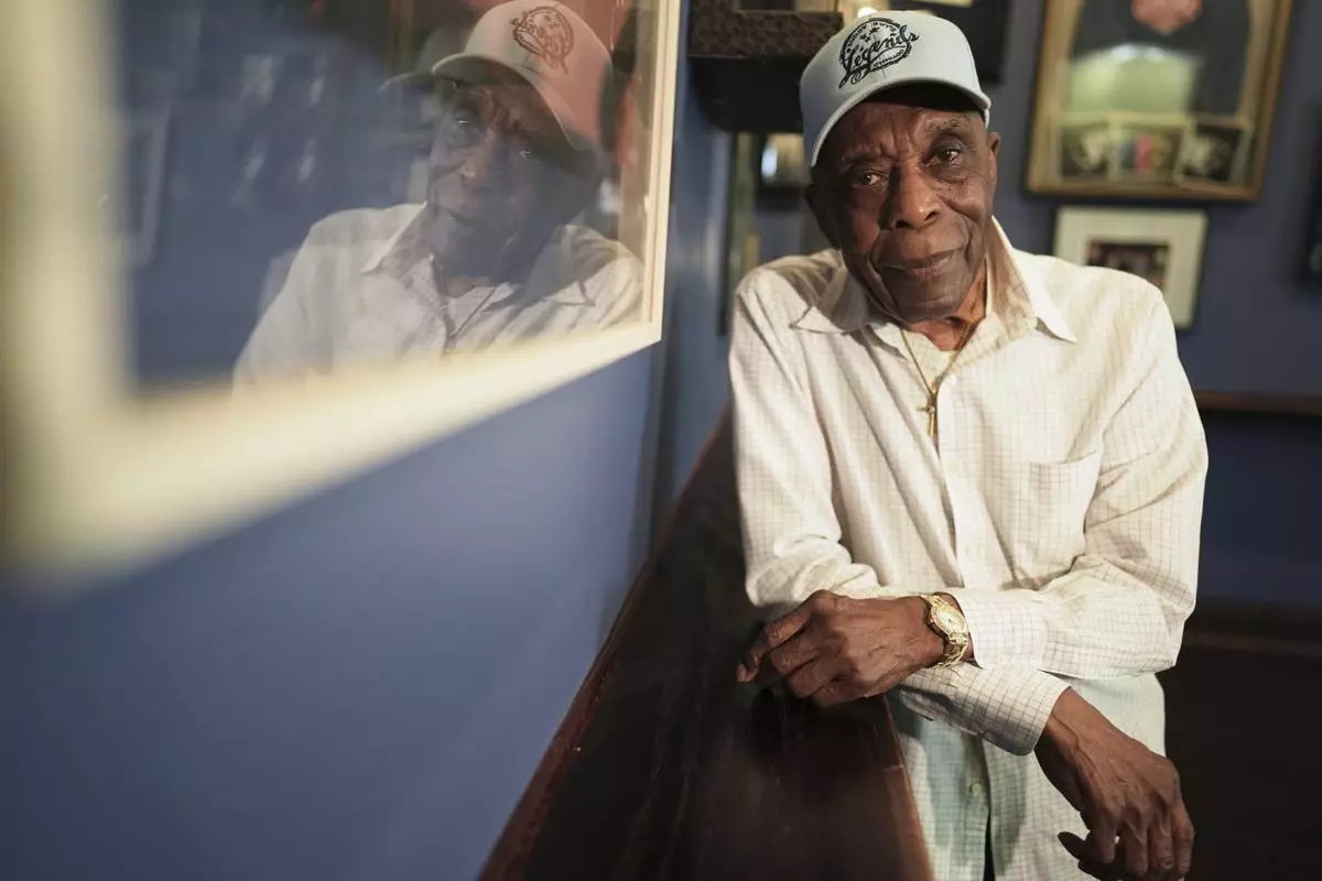 Buddy Guy poses for a portrait at Buddy Guy's Legends in Chicago on Thursday, July 24, 2025. (AP Photo/Nam Y. Huh)