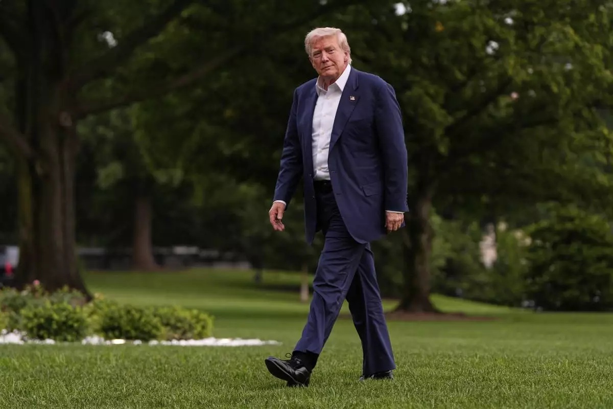 President Donald Trump walks from Marine One after arriving on the South Lawn of the White House, Tuesday, July 29, 2025, in Washington. (AP Photo/Julia Demaree Nikhinson)