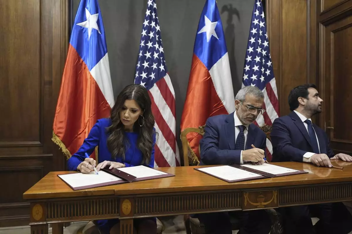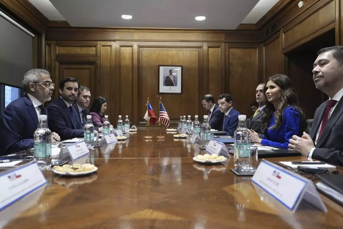 SANTIAGO, Chile (AP) — The United States will deploy biometric technologies in partnership with Chile to control migration and disrupt criminal networks, Homeland Security Secretary Kristi Noem said Wednesday during a visit to the South American nation.