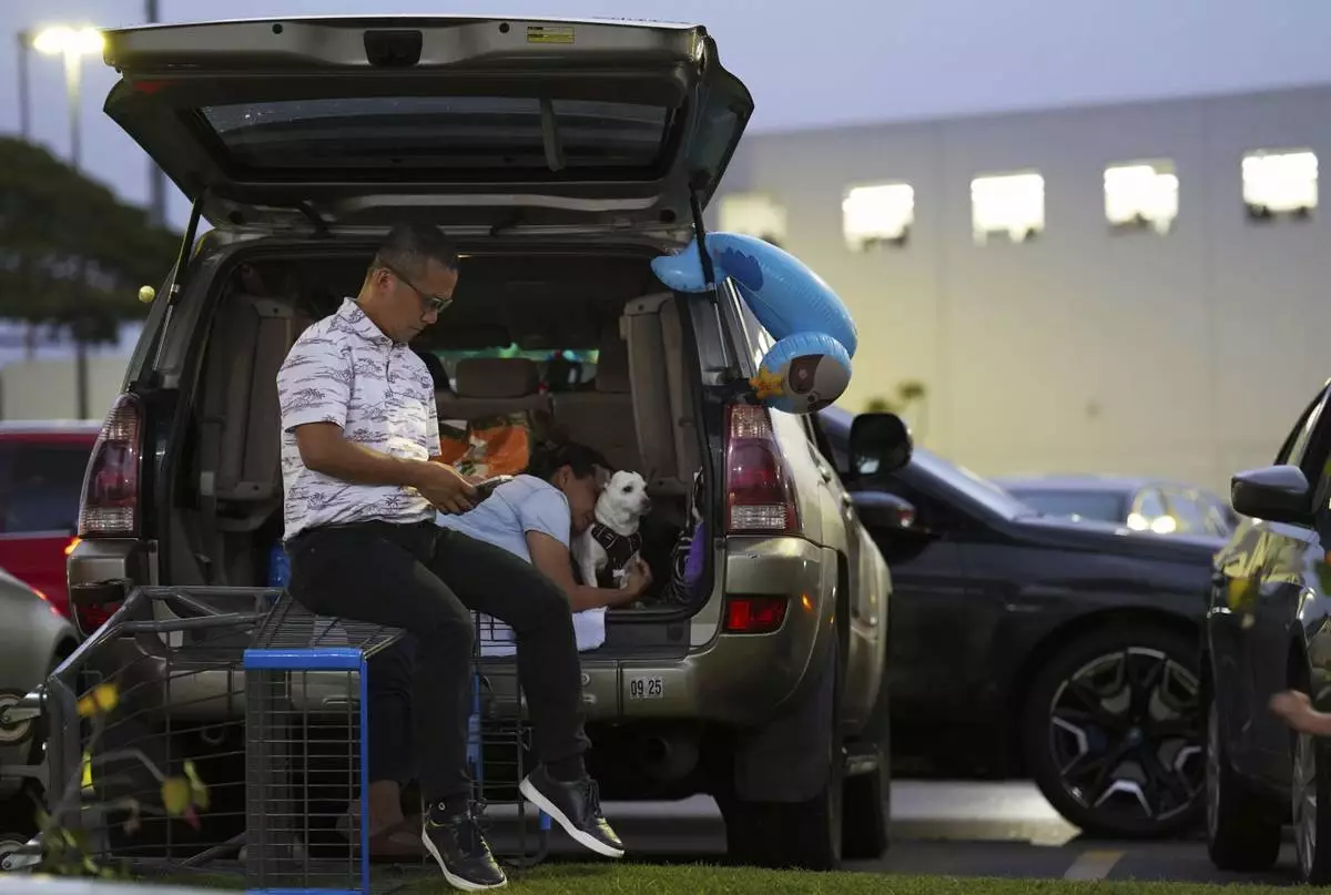 Oahu residents seek refuge from the threat of tsunami in a Walmart parking lot in Kapolei, Oahu, Hawaii, Tuesday, July 29, 2025. (AP photo/Michelle Bir)