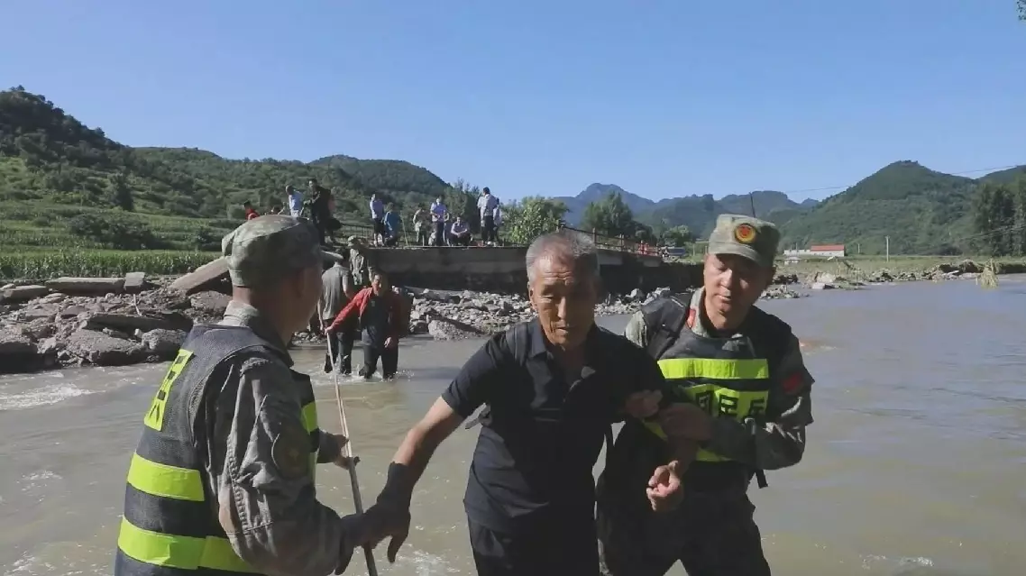 "We were hit by the flood disaster, but the People's Liberation Army soldiers and militia carried us on their backs or supported us arm-in-arm to escort us to cross the river safely," said Hao Junhong, a villager.
