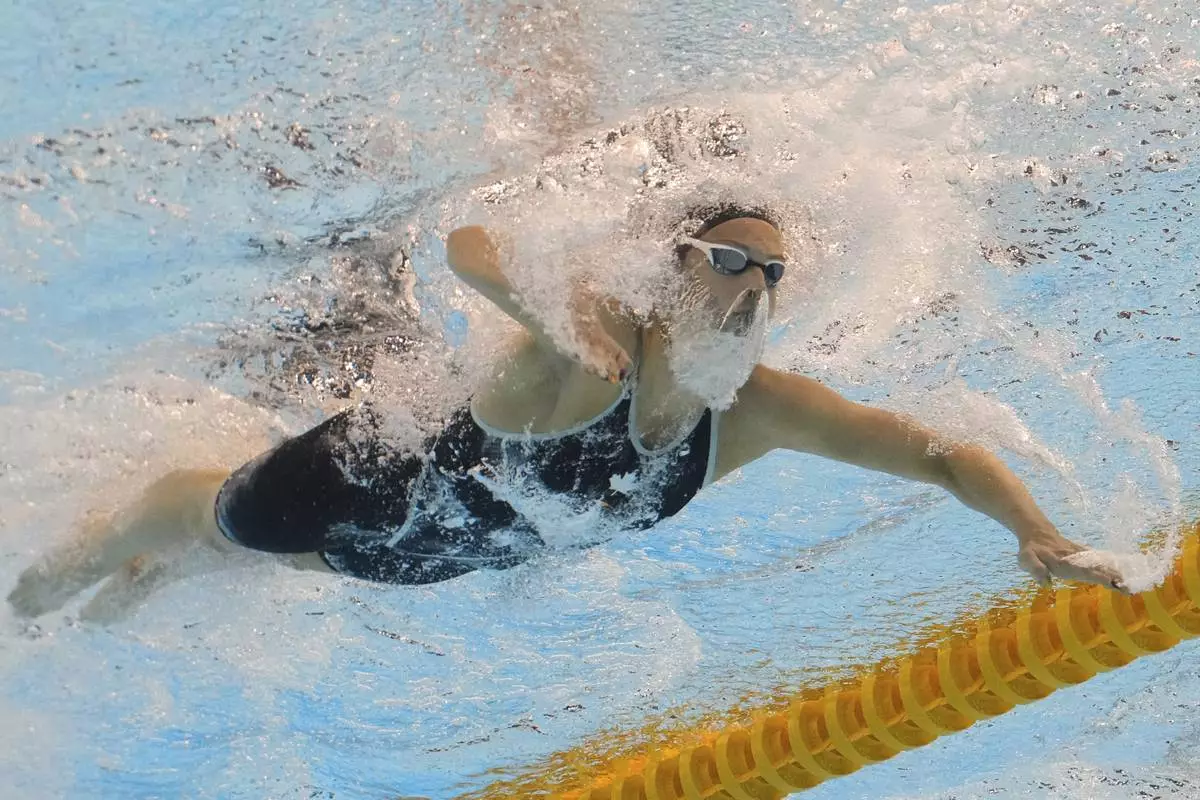 Summer Mcintosh of Canada competes in the women's 200-meter butterfly semifinal at the World Aquatics Championships in Singapore, Wednesday, July 30, 2025. (AP Photo/Lee Jin-man)