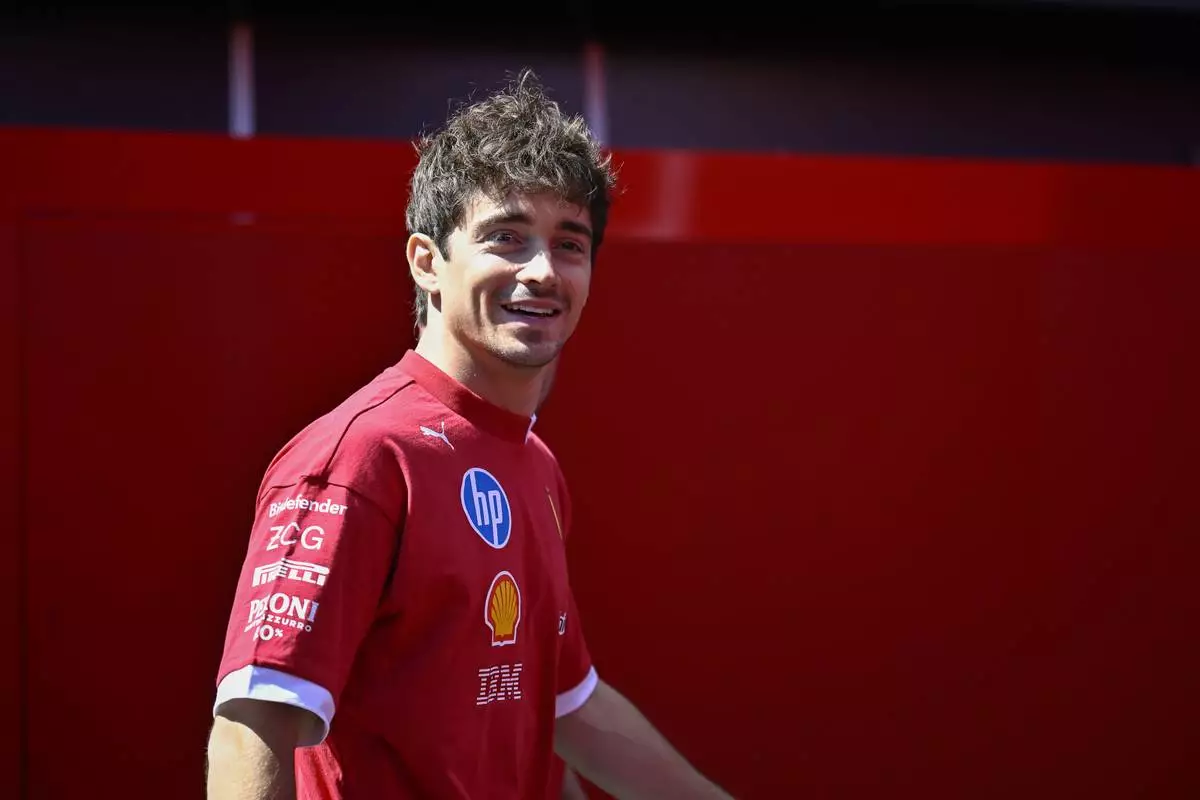 Ferrari driver Charles Leclerc of Monaco smiles in the paddock at the Hungaroring racetrack, in Mogyoród, Hungary, Thursday, July 31, 2025, ahead of the Hungarian Formula One Grand Prix. (AP Photo/Denes Erdos)