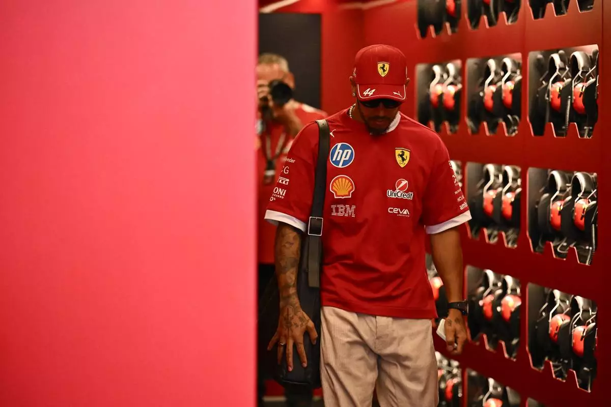 Ferrari driver Lewis Hamilton of the United Kingdom walks through the paddock at the Hungaroring racetrack, in Mogyoród, Hungary, Thursday, July 31, 2025, ahead of the Hungarian Formula One Grand Prix. (AP Photo/Denes Erdos)