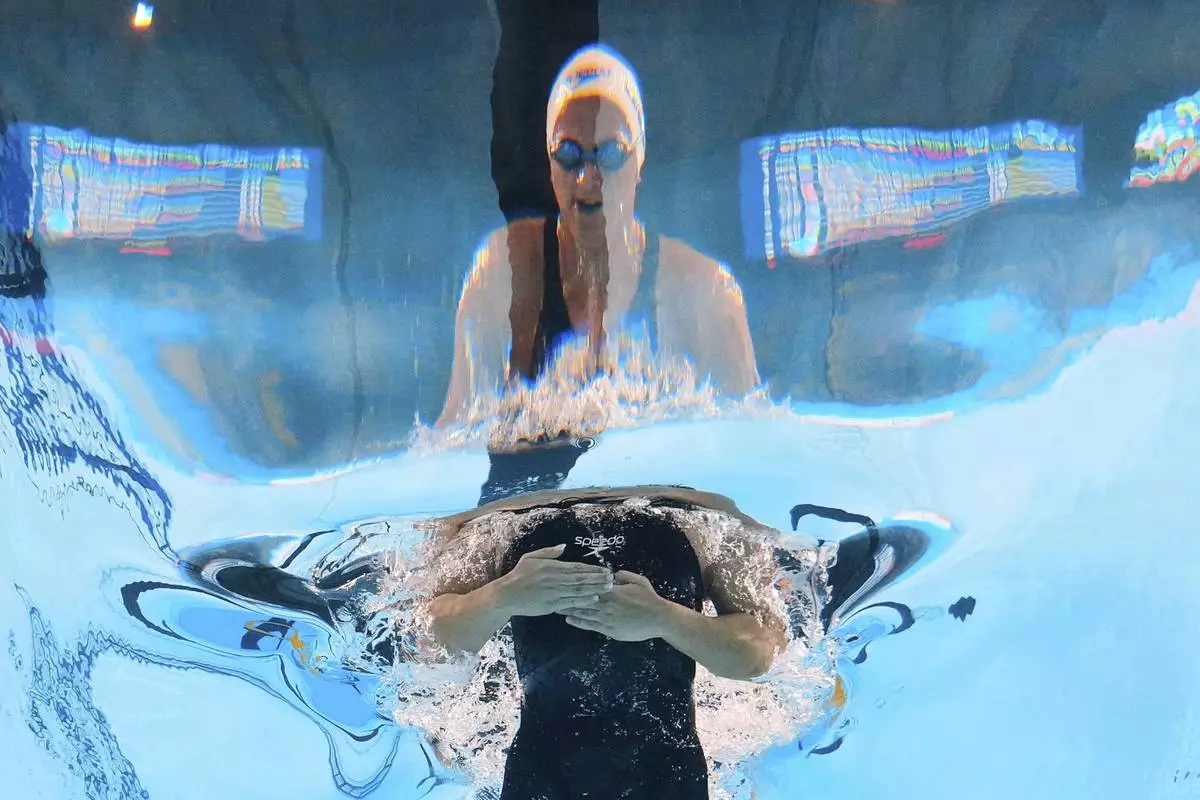 Anna Elendt of Germany competes in the women's 100-meter breaststroke heats at the World Aquatics Championships in Singapore, Monday, July 28, 2025. (AP Photo/Lee Jin-man)