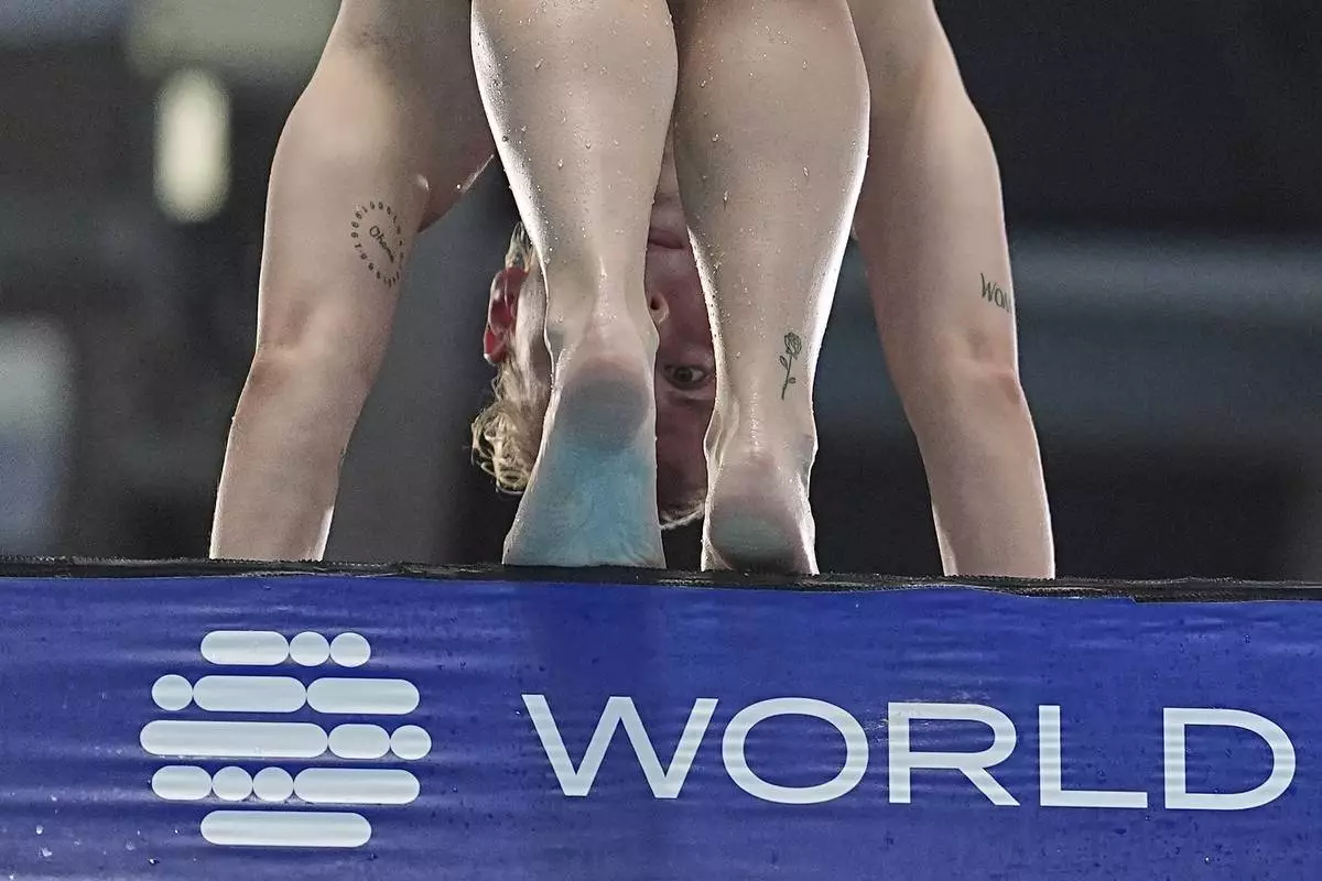 Kaylea Arnett of the United States competes in the women's 20m platform final at the World Aquatics Championships in Singapore, Saturday, July 26, 2025. (AP Photo/Vincent Thian)