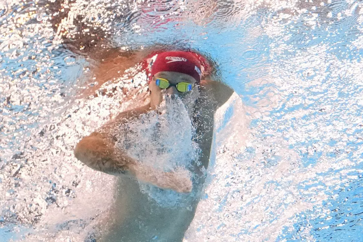 Matthew Richards of Britain competes in the men's 200-meter freestyle heat at the World Aquatics Championships in Singapore, Monday, July 28, 2025. (AP Photo/Lee Jin-man)