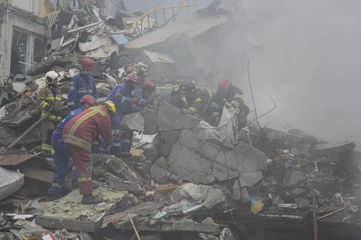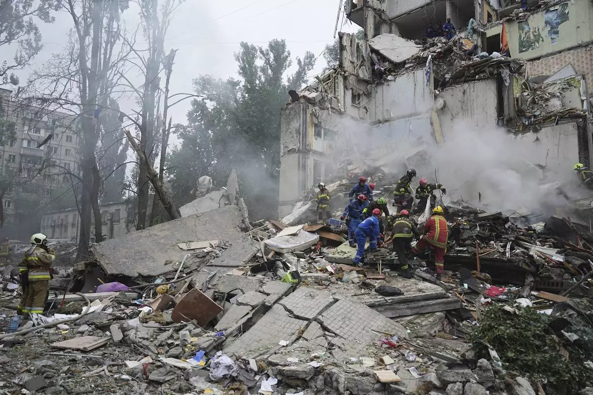 KYIV, Ukraine (AP) — Ukrainian authorities say a Russian drone and missile attack on Ukraine’s capital, Kyiv, killed a number of people, including a 6-year-old boy, and wounded dozens of others. A large part of a nine-story residential building collapsed after it was struck.