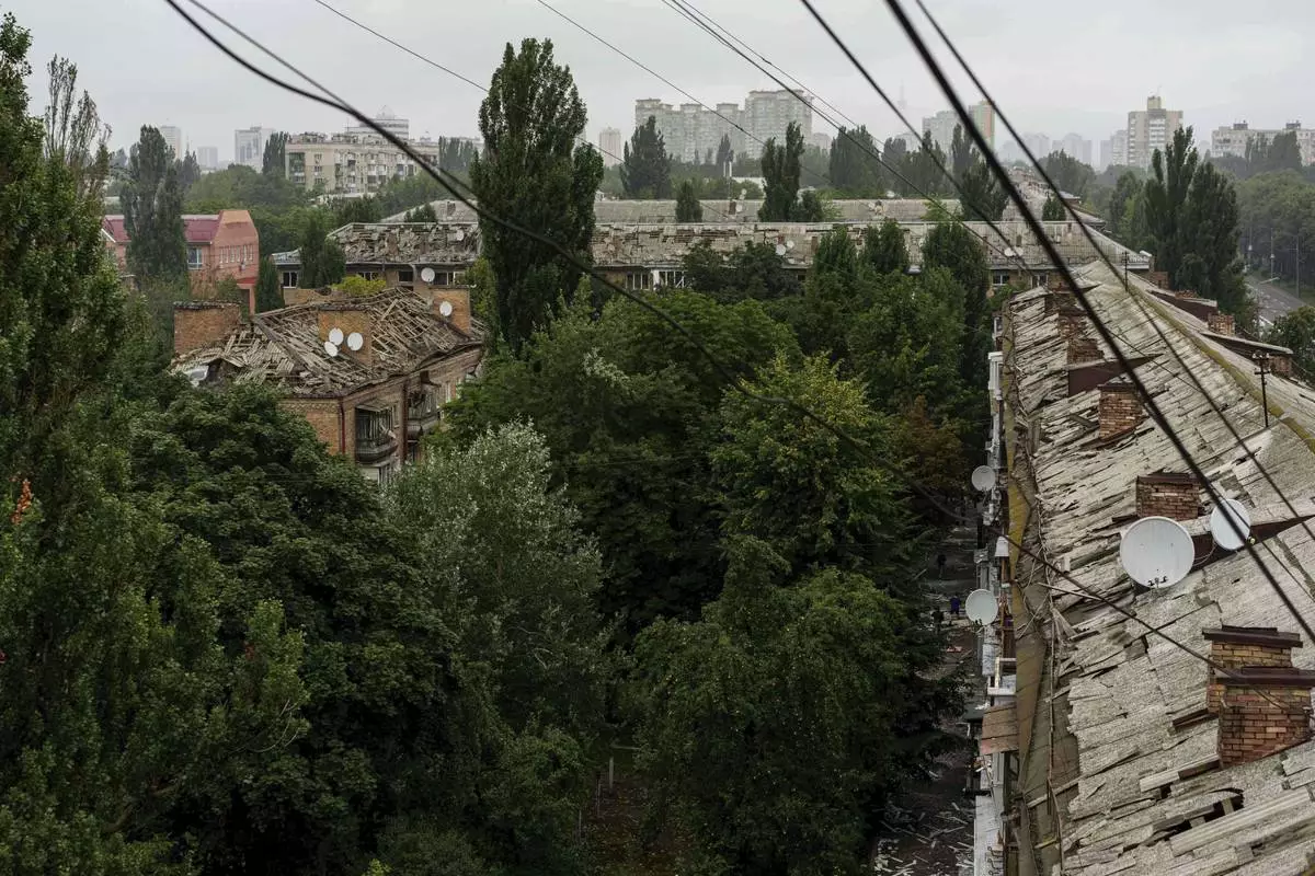 Residential buildings heavily damaged by a Russian strike in Kyiv, Ukraine, on Thursday, July 31, 2025. (AP Photo/Evgeniy Maloletka)