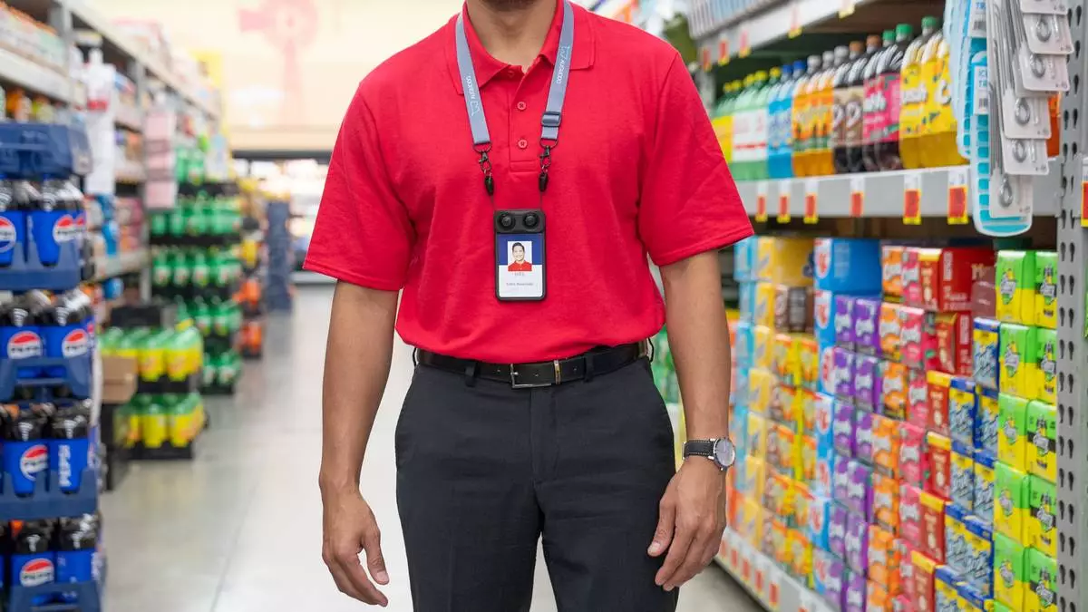 Retail associate wearing Augmodo SmartBadge™ powered by Spatial AI assistant