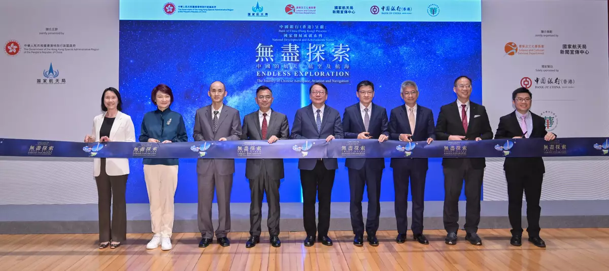 Jointly presented by the Hong Kong Special Administrative Region Government and the China National Space Administration (CNSA), the "Bank of China (Hong Kong) Presents: National Development and Achievements Series - Endless Exploration: The Journey of Chinese Aerospace, Aviation and Navigation" exhibition will be launched at the Hong Kong Science Museum (HKScM) from tomorrow (August 1) to September 7. This is the first time for Hong Kong to showcase the country's achievements in these three major arenas in the same exhibition. Featuring a rich array of artefacts, models, graphics, videos and interactive exhibits, the exhibition not only presents important developments in relevant fields, but also aims to inspire the public, especially youngsters, with a passion for technological innovation while enhancing national confidence in science and technology.