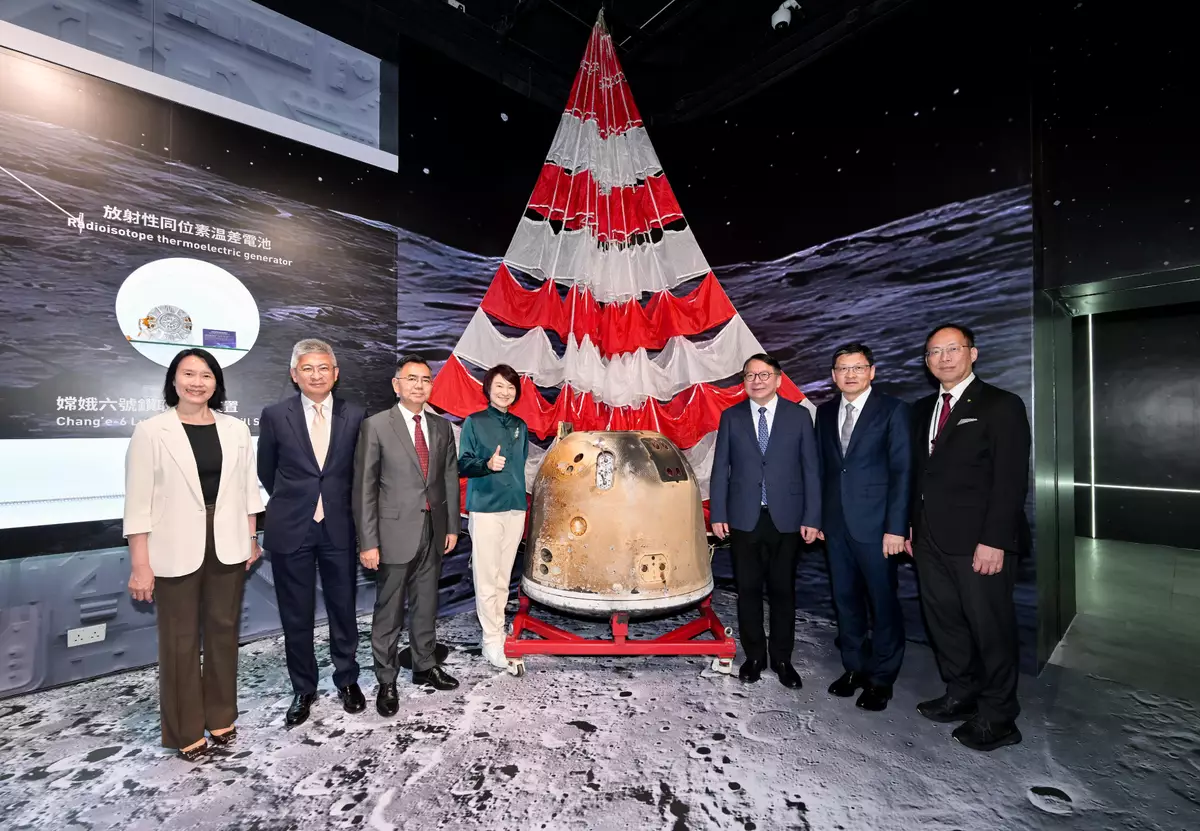 This exhibition achieves several "firsts", including the first concurrent display in Hong Kong of lunar soil samples collected from the far side and near side of the Moon by the Chang'e-6 and the Chang'e-5 respectively. Other exhibits debuting in Hong Kong include the Chang'e-6 returner and parachute, seawater samples collected from 10,000 metres under the sea, as well as models of the "three pearls" of the shipbuilding industry, namely an aircraft carrier, a luxury cruise ship and a liquefied natural gas carrier.