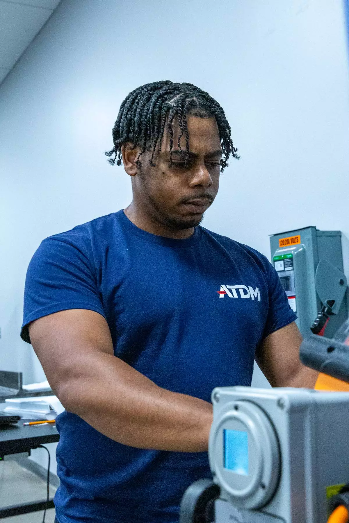 Glenn Claypool, ATDM’s 1,000th program completer, trains with non-destructive testing equipment at the ATDM Maritime Training Center in Danville, Va. ATDM’s 16-week program equips students with the skills needed to support the defense industrial base and launch high-demand careers.