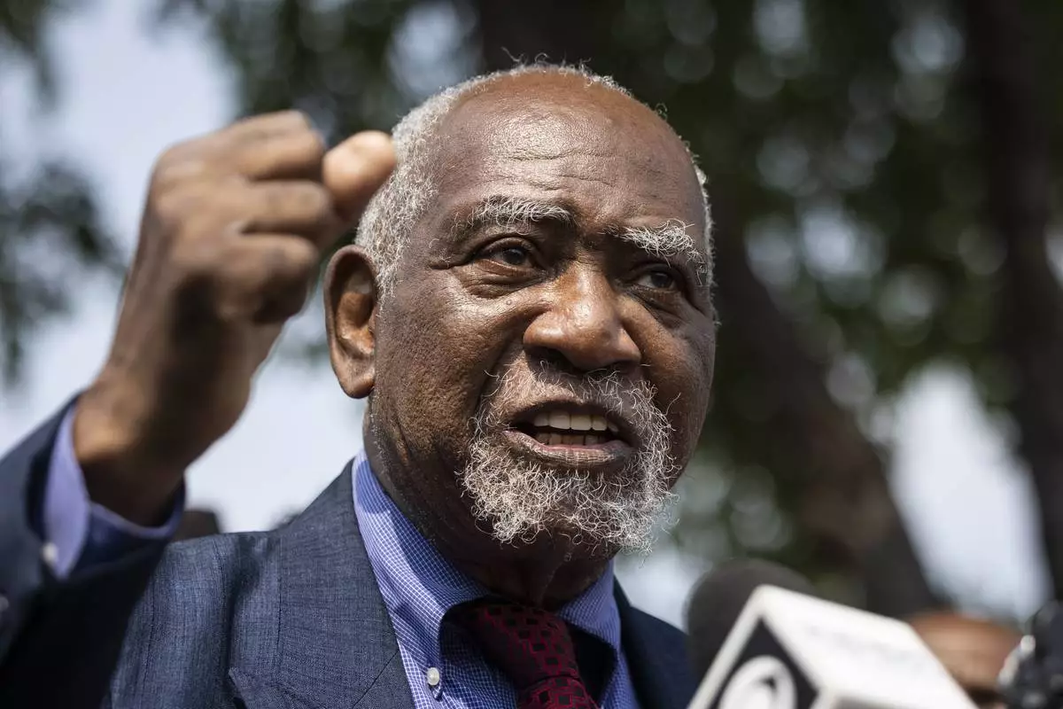 U.S. Rep. Danny Davis announces he'll retire after finishing his 15th term during a news conference outside his 7th Congressional District office on the West Side of Chicago, Thursday, July 31, 2025. (Ashlee Rezin/Chicago Sun-Times via AP)