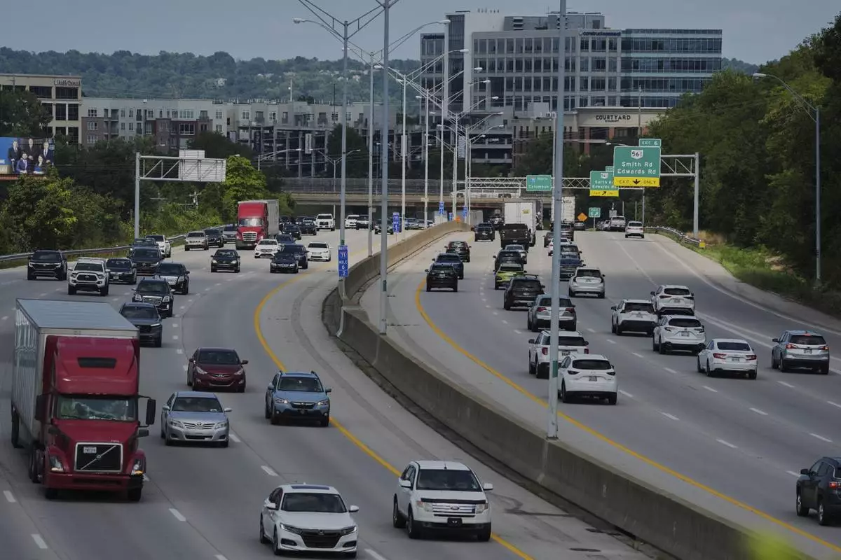 Vehicles drive along a highway Wednesday, July 30, 2025, in Cincinnati. (AP Photo/Joshua A. Bickel)