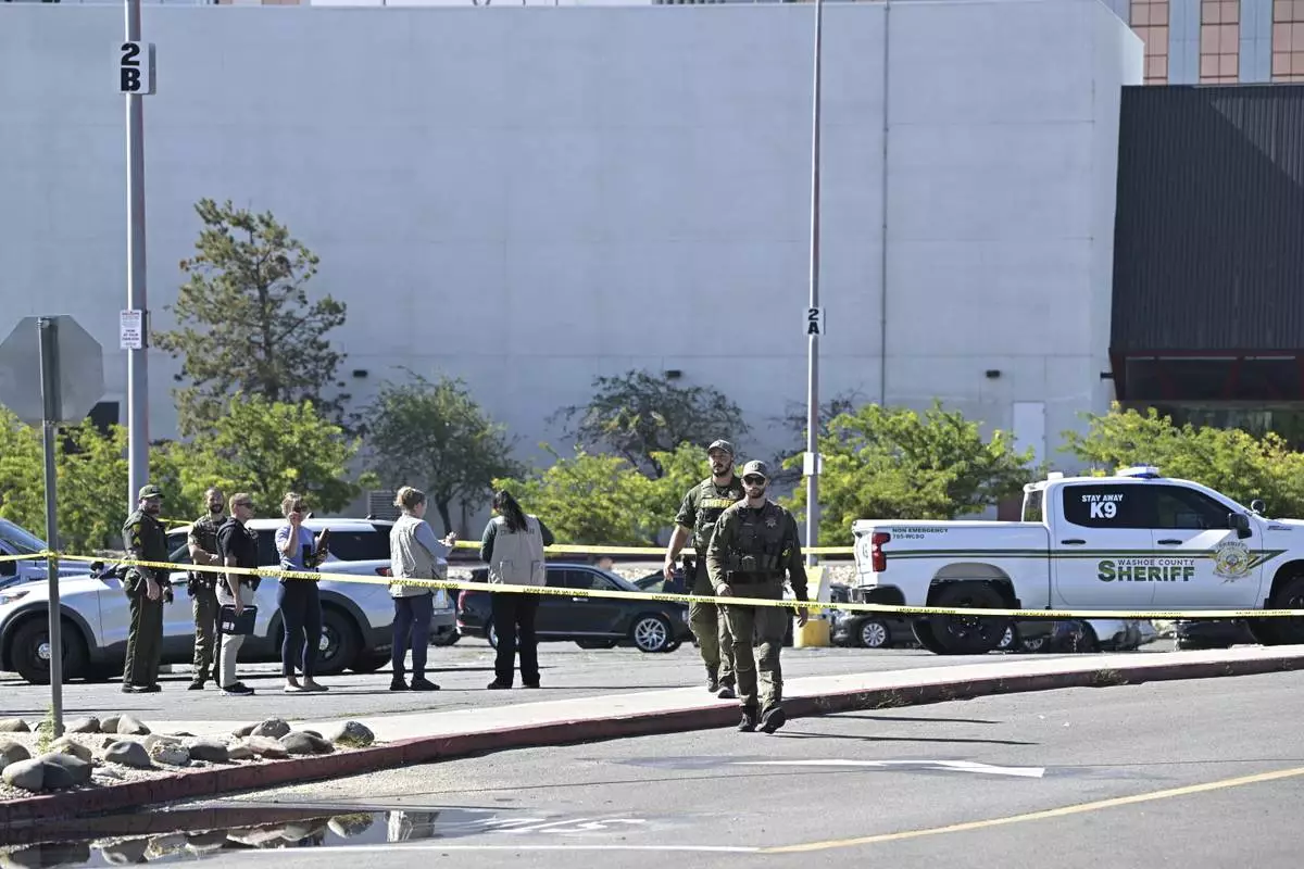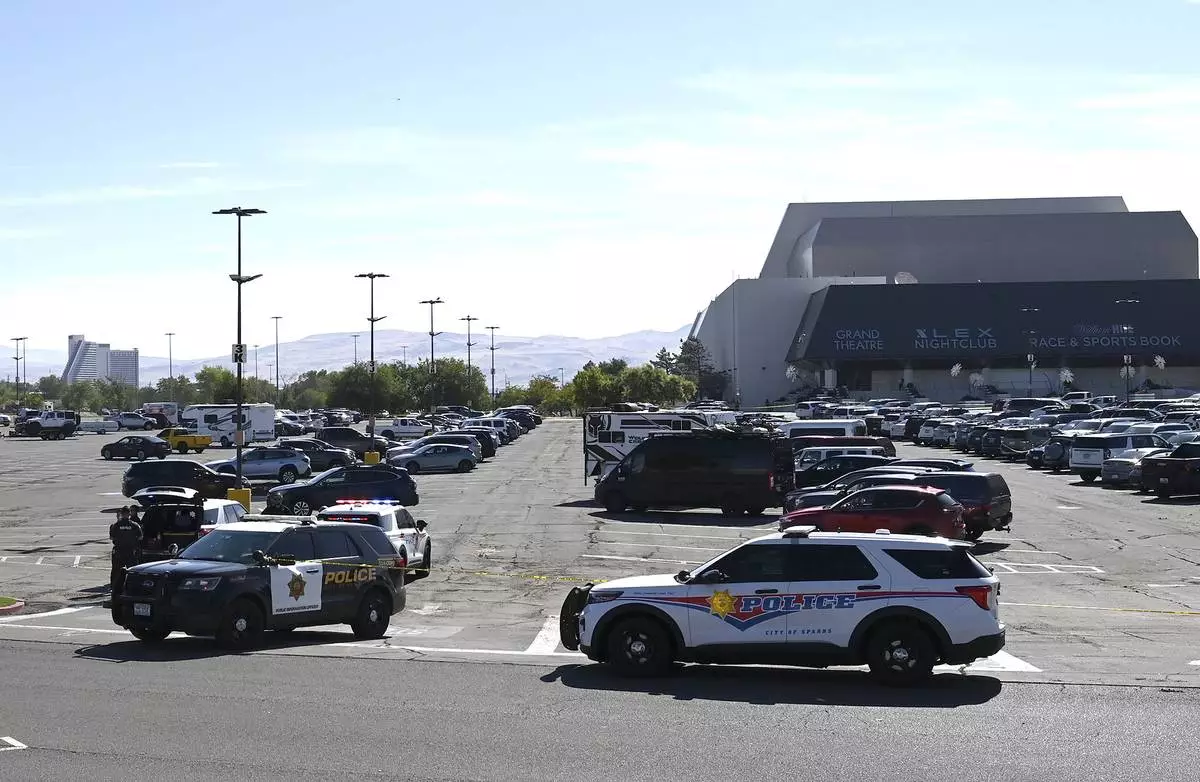 Police respond to a shooting outside the Grand Sierra Resort in Reno, Nev., Monday, July 28, 2025. (AP Photo/Andy Barron)